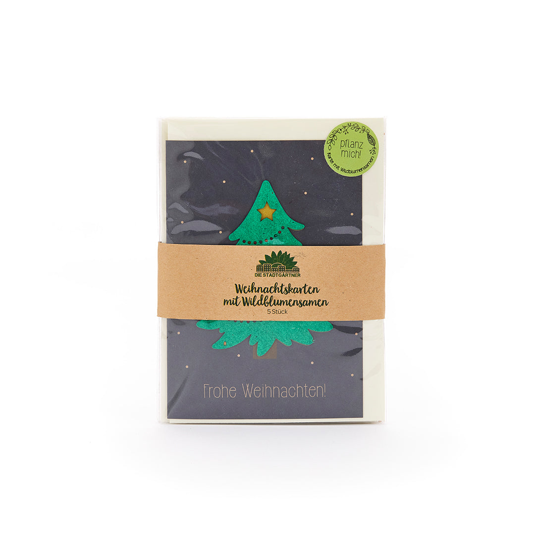5 wachsende Weihnachtskarten: Mit diesem Set aus unseren 5 beliebtesten Weihnachtskarten mit Umschlag verschickst du dieses Jahr die schönsten und nachhaltigsten Weihnachtsgrüße.