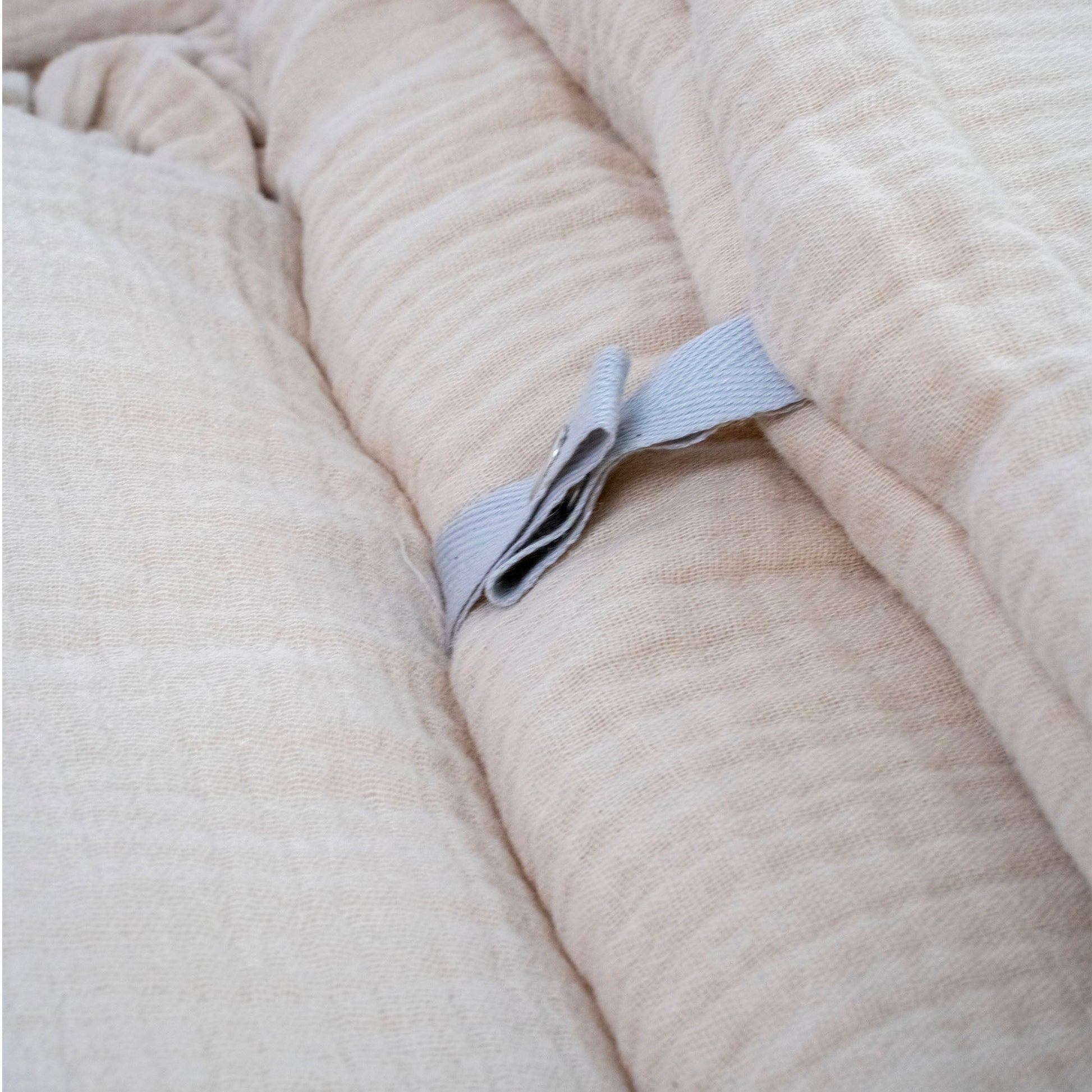 Gefertigt aus 100 % GOTS-zertifiziertem Musselin, ist der Stoff besonders weich, hautfreundlich & atmungsaktiv – ideal für empfindliche Babyhaut. Die praktische Schleifenbindung ermöglicht ein individuelles Anpassen, ähnlich einem sanften Pucken, und sorgt dafür, dass dein Baby geborgen & sicher schläft.