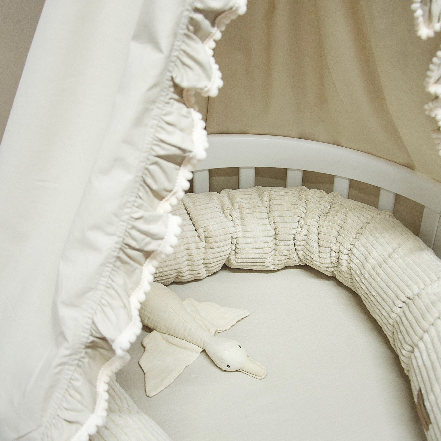 Das hochwertige Cordmaterial ist weich, robust & angenehm auf der Haut. Die flexible Form sorgt dafür, dass sich Arme und Beine deines Babys nicht in den Gitterstäben verfangen, während die atmungsaktive Füllung für zusätzlichen Komfort sorgt.