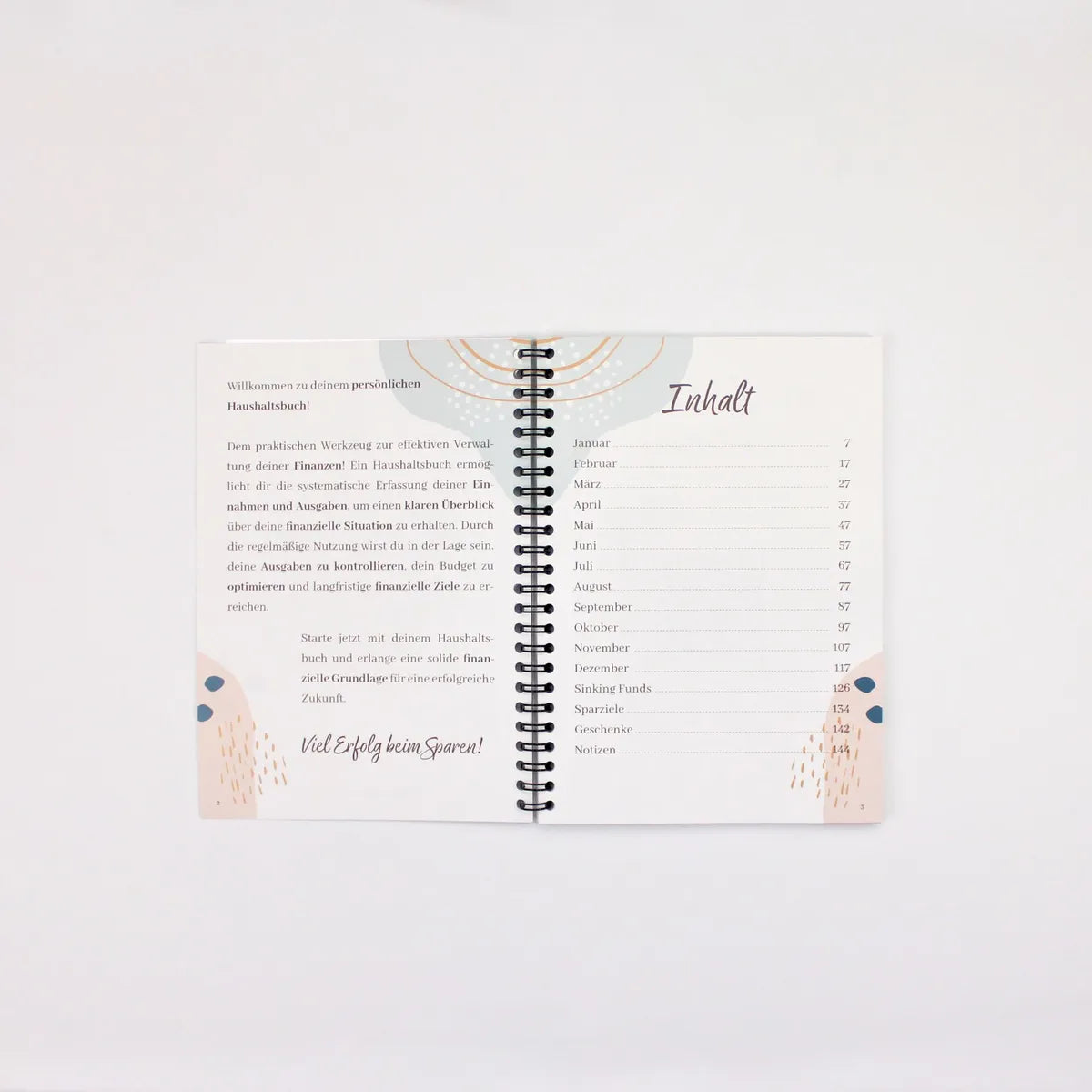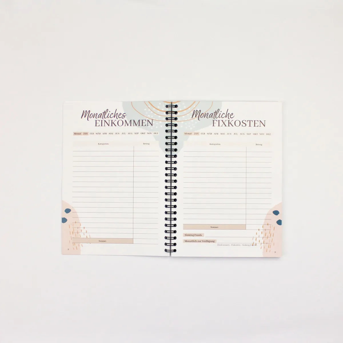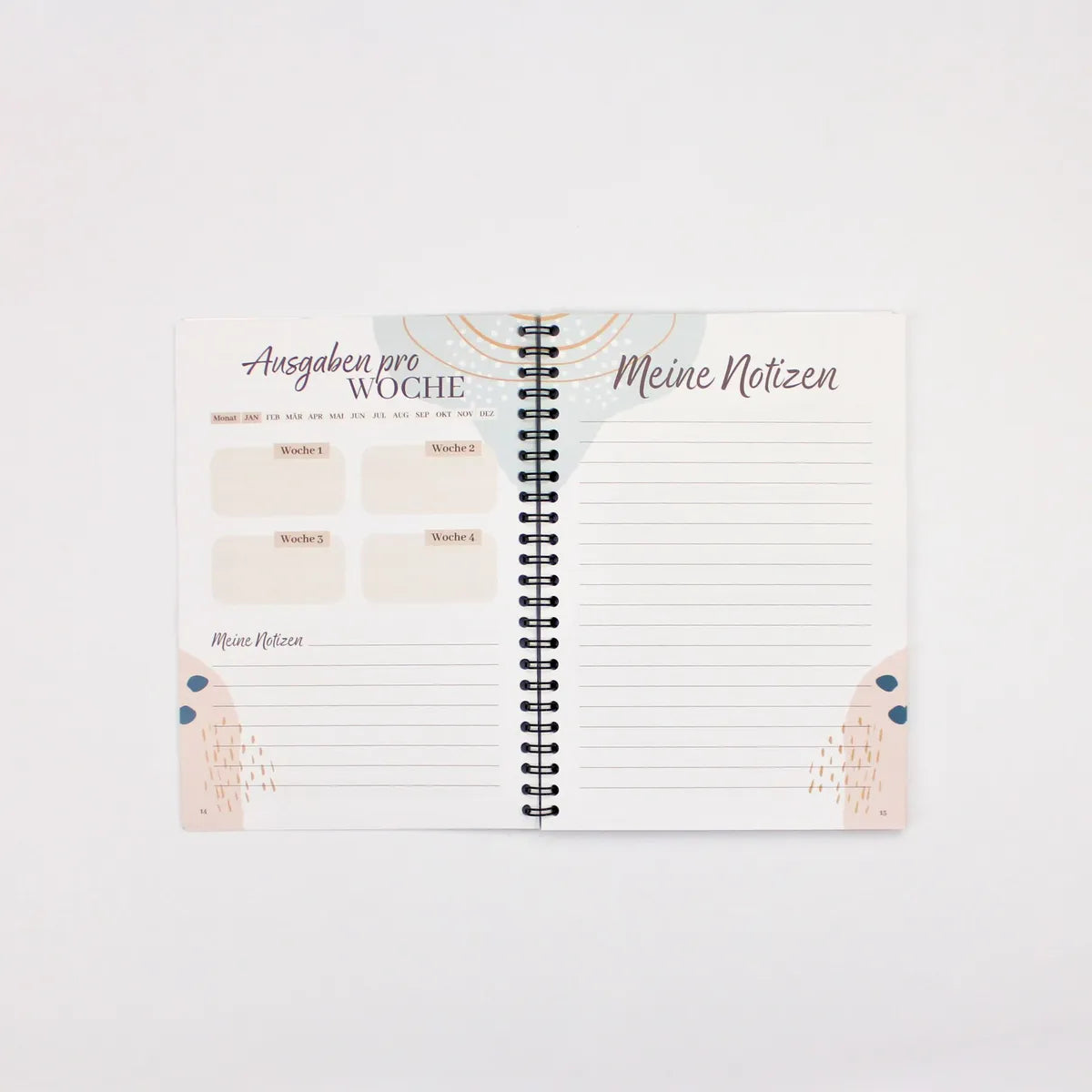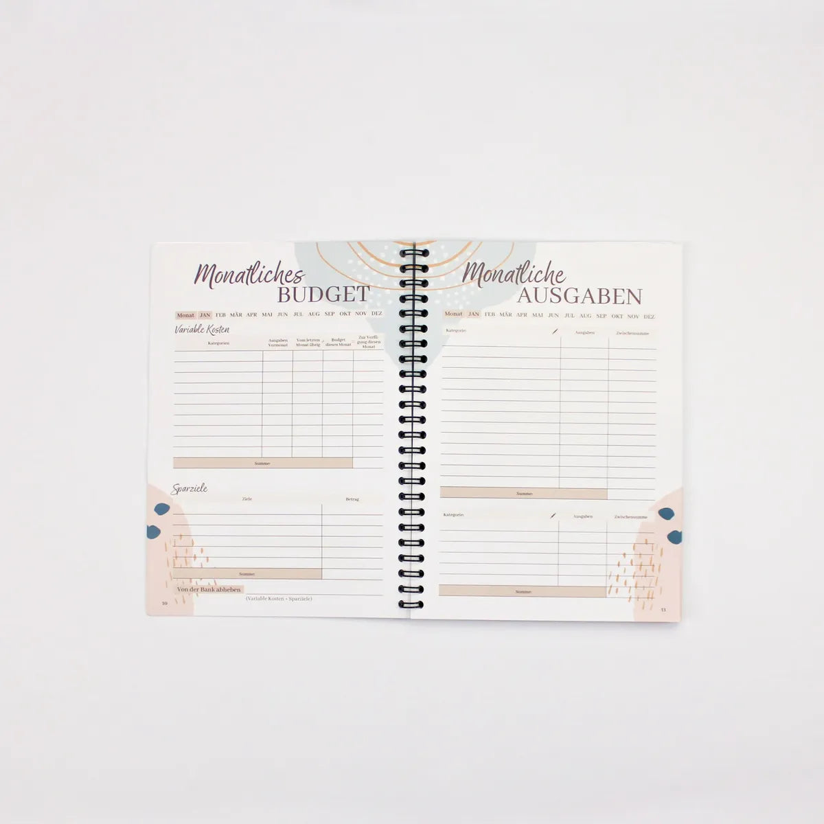 Der liebevoll gestaltete Budget Planer begleitet dich durch das ganze Jahr und bietet dir umfangreiche Funktionen, um deine Einnahmen und Ausgaben effektiv zu planen. Mit diesem physischen Haushaltsbuch behältst du deine Einnahmen und Ausgaben effektiv im Blick und kannst finanzielle Ziele souverän verfolgen.