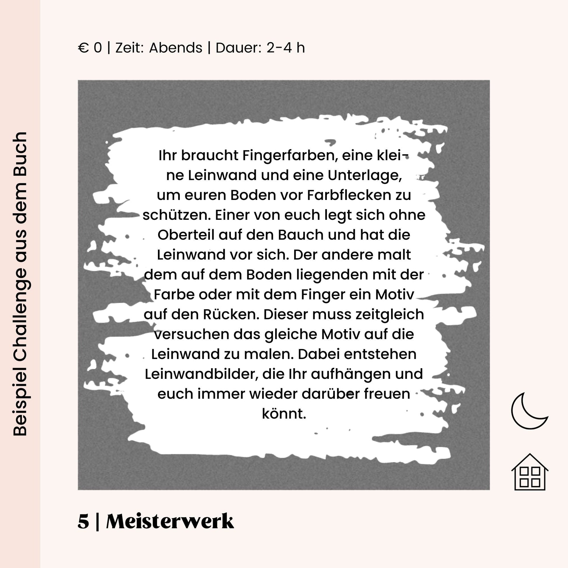 Mit diesem Buch könnt ihr nicht nur Spaß haben, sondern auch wieder näher zusammenrücken. Jedes Date ist eine Gelegenheit, miteinander zu lachen, zu reden und neue Seiten aneinander zu entdecken. Ob ein entspannter Abend zu Hause oder ein aufregendes Abenteuer – mit "Memories2Make" erlebt ihr unvergessliche Momente, die eure Beziehung stärken und euch neue Perspektiven aufeinander eröffnen.