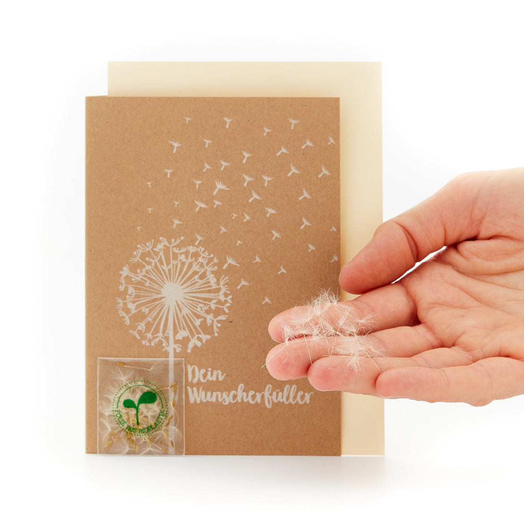 Schicke liebe Grüße an deine Liebsten mit dieser schönen Karte aus unserer Saatpapeterie. Jede noch so weite Entfernung wird durch diese charmante Geste plötzlich ganz klein, denn ein aufrichtiger Gruß kennt keine Entfernung. Dazu hast du die ideale Möglichkeit, einen Wunsch zu verschenken. Glaube uns, darüber freut sich jeder. Ob als liebe Geste zwischendurch oder als Geschenk für diverse Anlässe, ein Wunsch ist ein besonderes und wertvolles Geschenk.