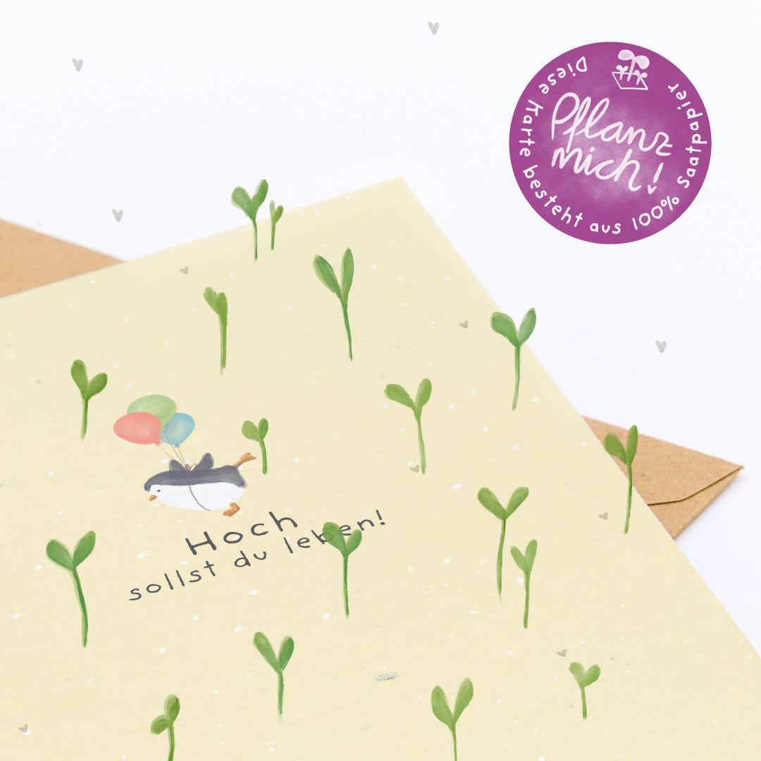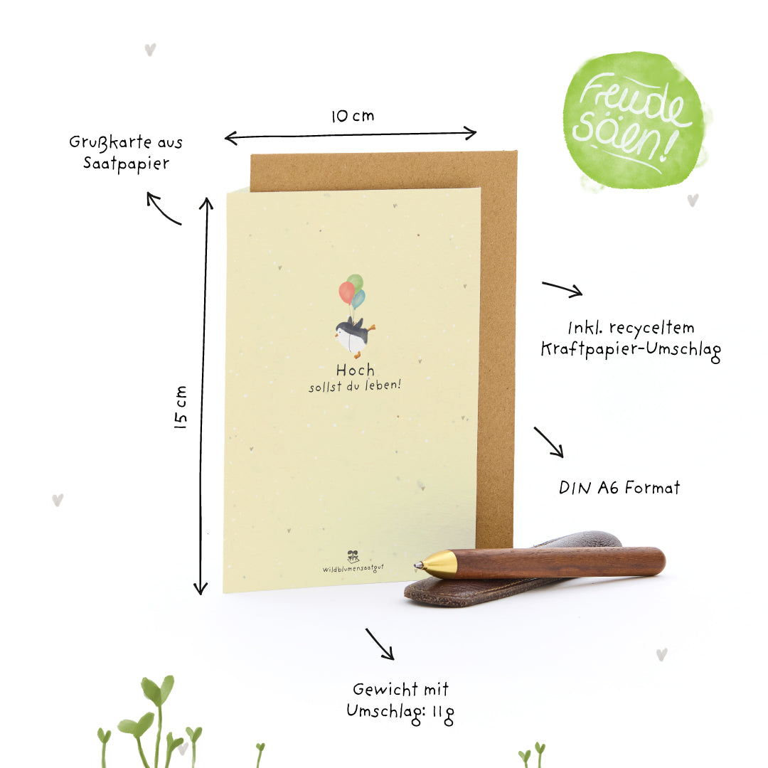 Grußkarte "Hoch sollst du leben" Wachsende Geburtstagskarte aus Saatpapier mit Wildblumensaatgut | Fröhliche Grußkarte zum Geburtstag für Freunde, Familie oder Kollegen | Klappkarte zum Hochlebenlassen inkl. Kraftpapier-Umschlag | 10,5 x 14,8 cm (DIN A6)