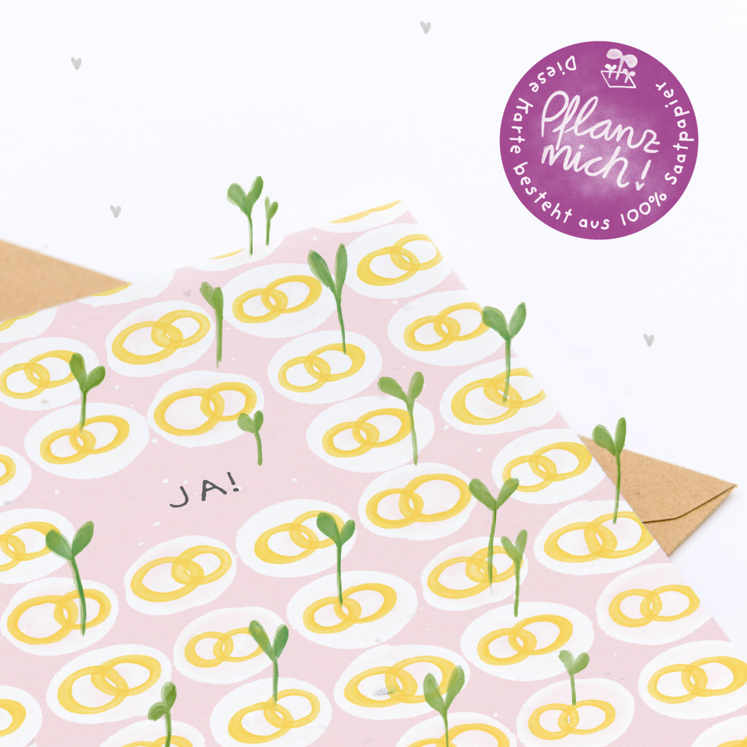 Nachhaltig & plastikfrei: Die Karte besteht aus kompostierbarem Saatpapier, der Umschlag aus Kraftpapier, die Hülle ist biologisch abbaubar - ein Hochzeitsgruß, der Freude macht und die Liebe weiter wachsen lässt.