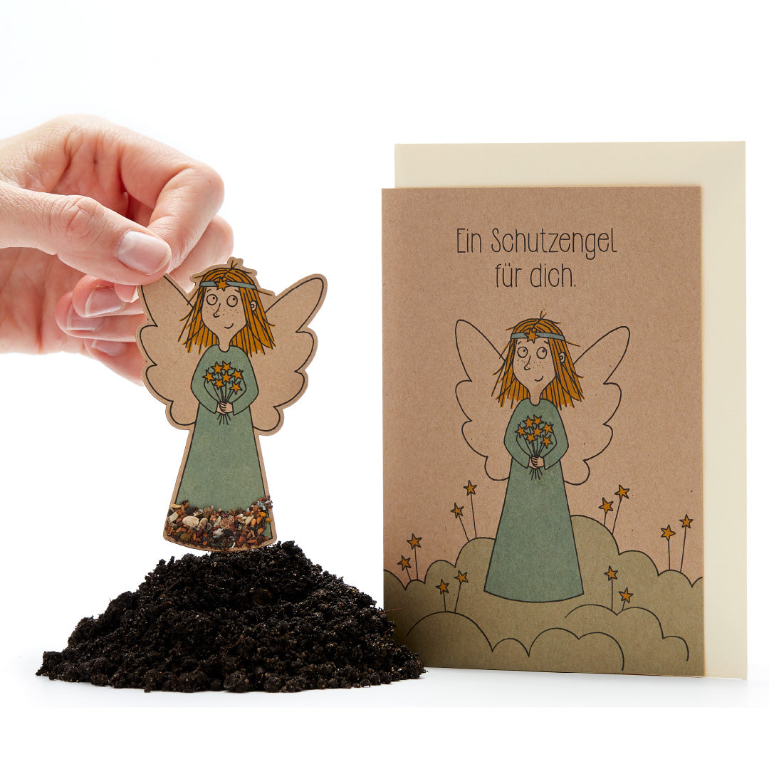 Ich schicke dir einen Schutzengel. Er begleitet dich, wohin du auch gehst und er passt auf dich auf, wann immer du ihn brauchst. Und weil so ein Schutzengel Superkräfte hat, schenkt er dir dazu auch noch noch Kraft, Freude, Hoffnung, Mut, Glück, Trost, Liebe und in unserem Fall: Einen kunterbunten Blumenstrauß.