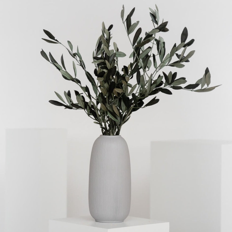 Verleihe deiner Dekoration eine mediterrane Note mit unseren konservierten Olivenzweigen. Die natürliche Schönheit und Langlebigkeit dieser Zweige machen sie zu einer idealen Wahl für verschiedene Arrangements. Ob als stilvolle Tischdekoration, als Teil deiner Trockenblumensträuße oder als elegantes Highlight in einer Vase - unsere konservierten Olivenzweige setzen einen zeitlosen Akzent in deinem Zuhause. Genieße die mediterrane Atmosphäre das ganze Jahr über mit diesen pflegeleichten und stilvollen Dekorationselementen.