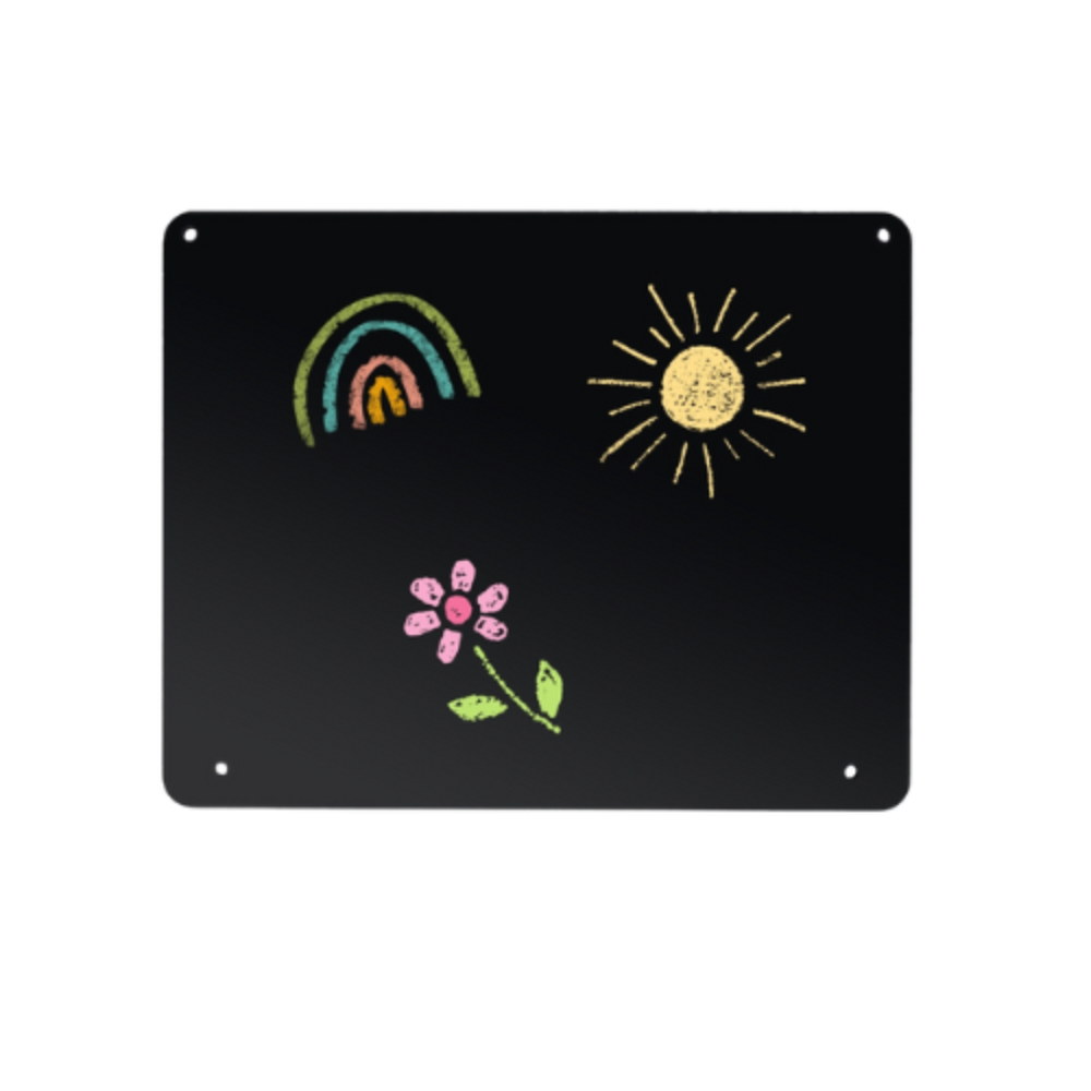 Die Kreidetafel kann sowohl auf der Lochplatte, als auch auf der Rückseite der Kulissenplatte befestigt werden.
