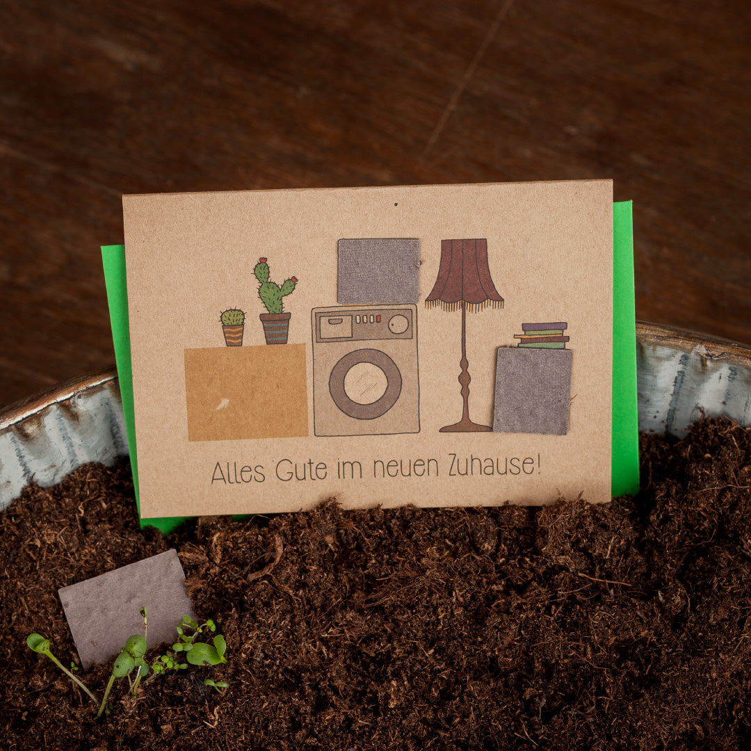 Auch eine gute Möglichkeit der Ablenkung liefert die Karte gleich mit. Denn wer genug vom Schrankeinräumen hat, kann sich zwischendurch ja einfach schon mal ein paar Blumen säen. Für ein schönes, buntes Zuhause!